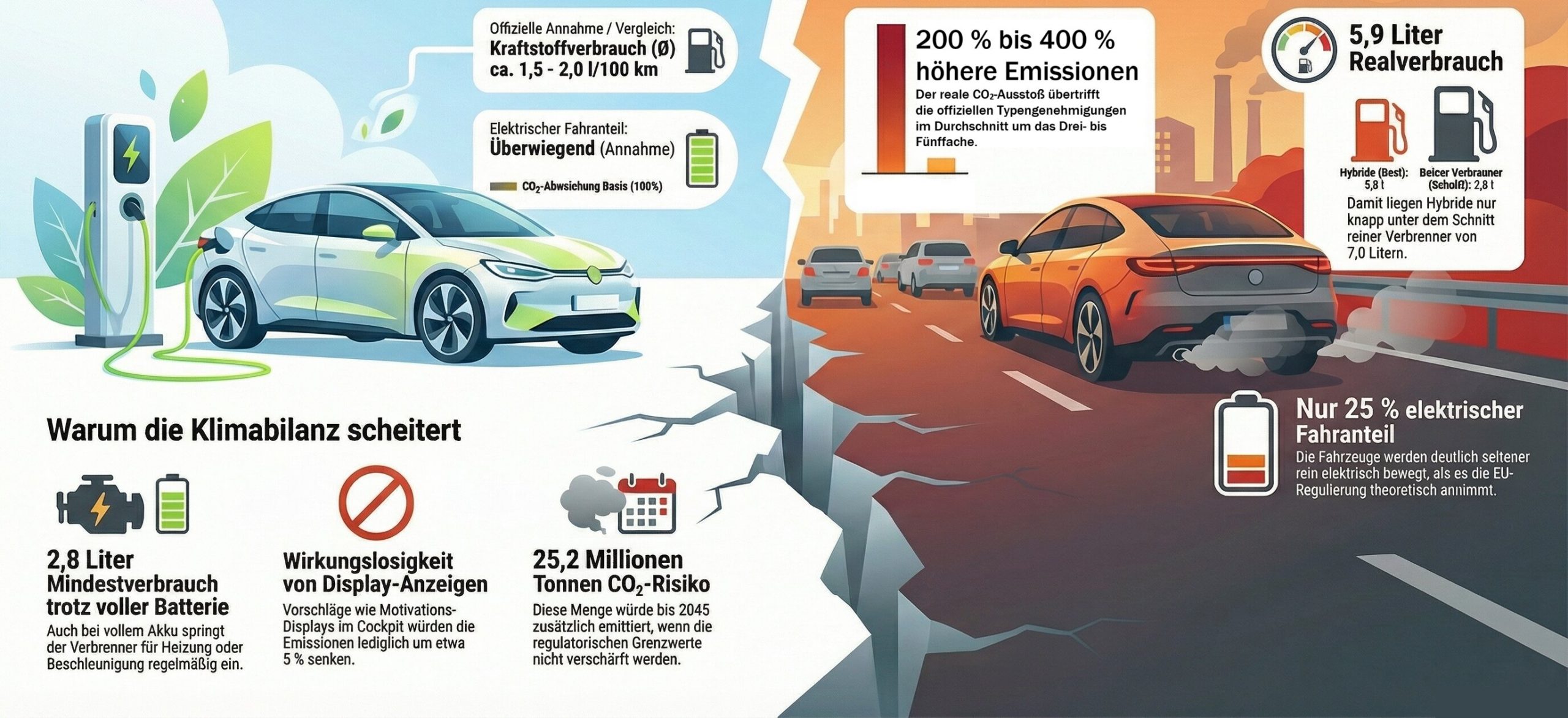 | CO2-Abweichung | 3-5-mal höher | Realer Ausstoß vs. offizieller WLTP-Wert |
