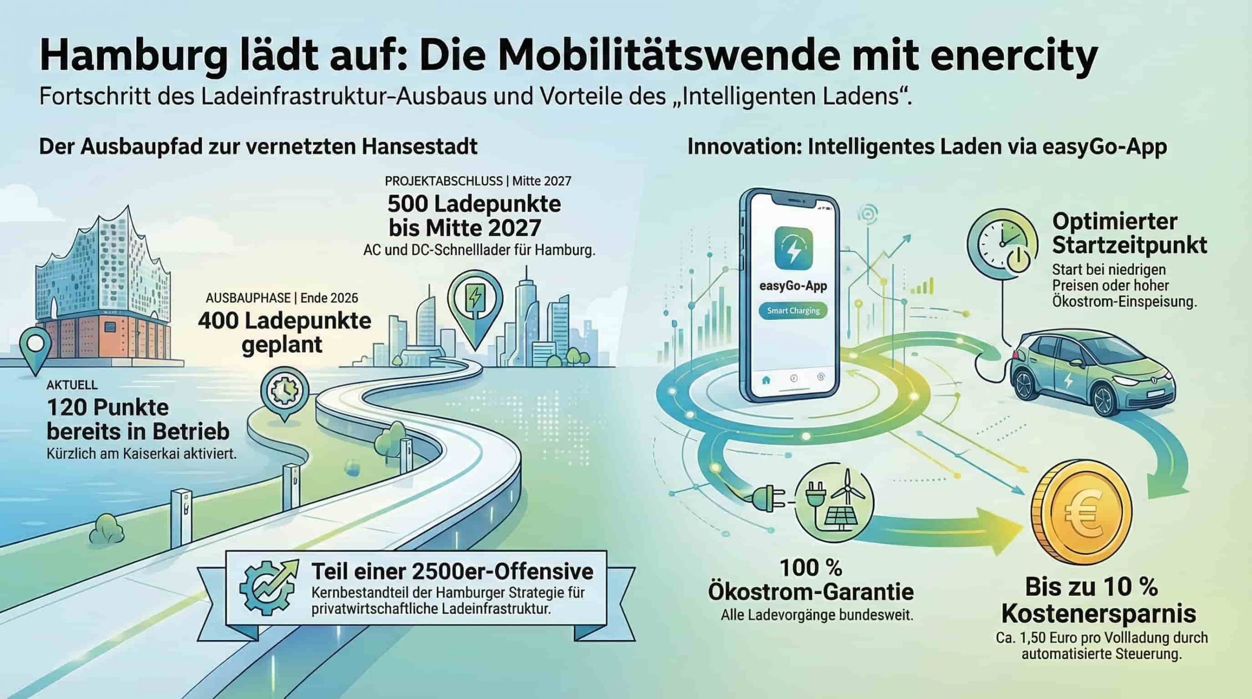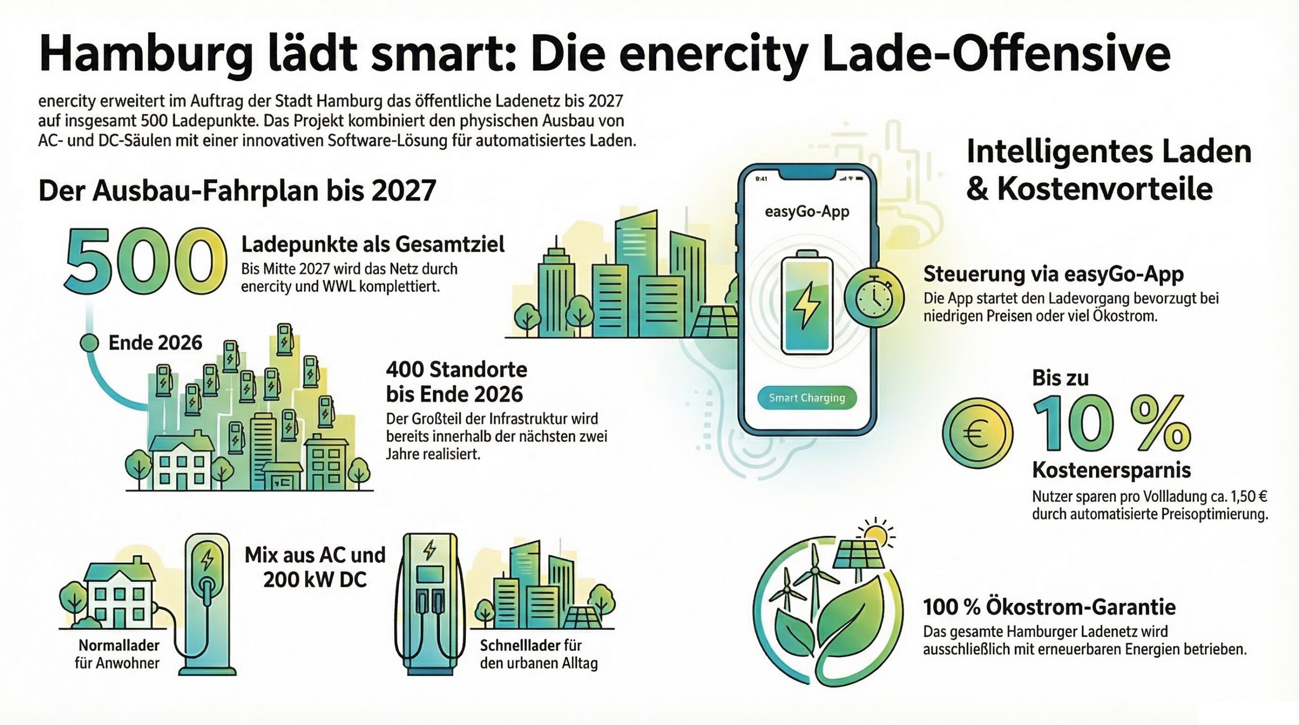 Dieses Vorhaben ist in die Hamburger Ladeinfrastruktur-Offensive eingebettet, die bis 2027 insgesamt 2.500 zusätzliche öffentliche Ladepunkte bereitstellen möchte. enercity betreibt bundesweit bereits in 47 Kommunen eine öffentliche Ladeinfrastruktur mit über 1.000 Ladepunkten – alle zu 100% mit Ökostrom. Wirtschaftssenatorin Dr. Melanie Leonhard betont hierbei die Notwendigkeit eines dichten Netzes für die Alltagstauglichkeit der Elektromobilität.