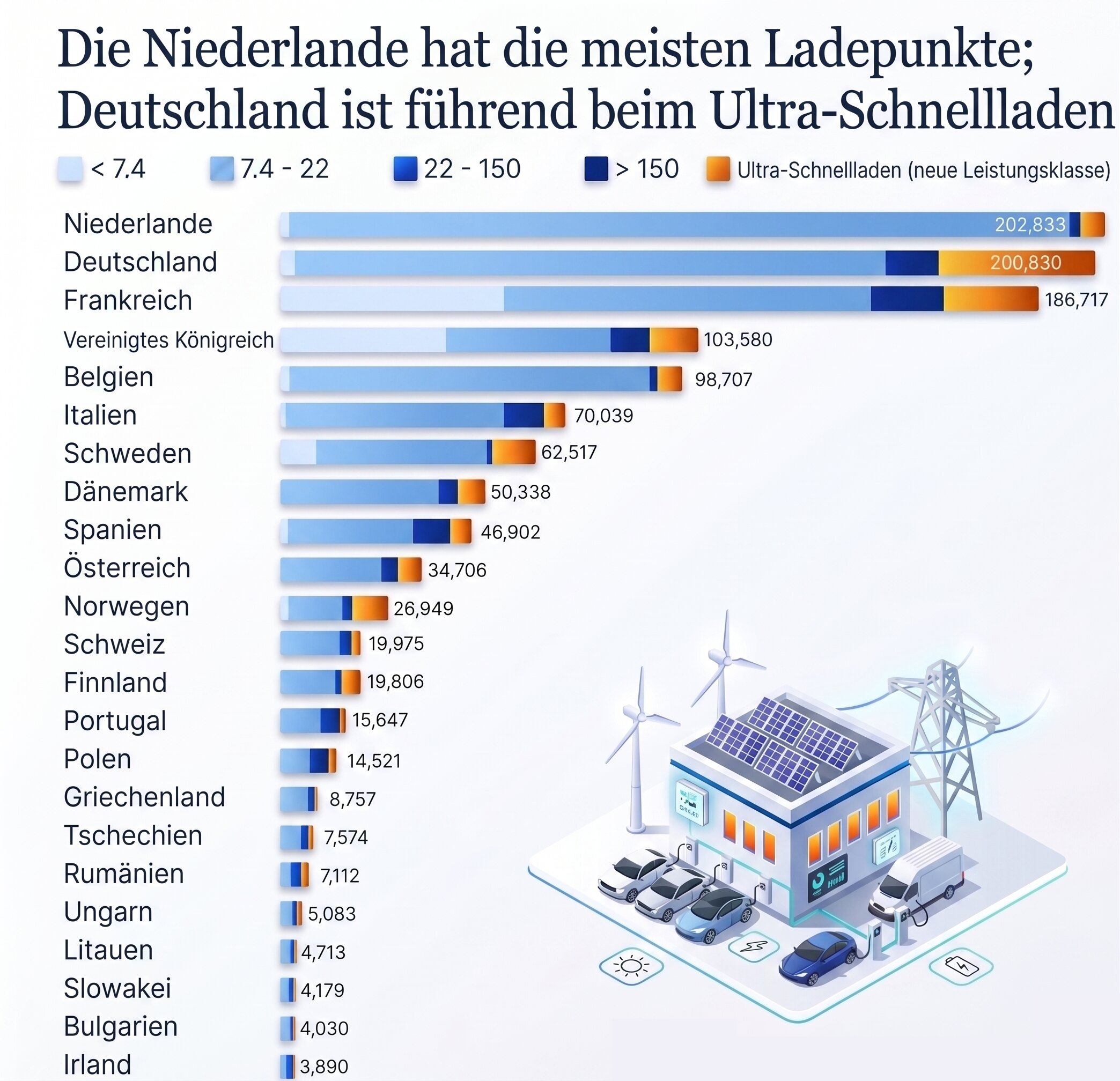 - Spitzenreiter: Deutschland dominiert bei Ultra-Fast-Chargern (38.138 Standorte).