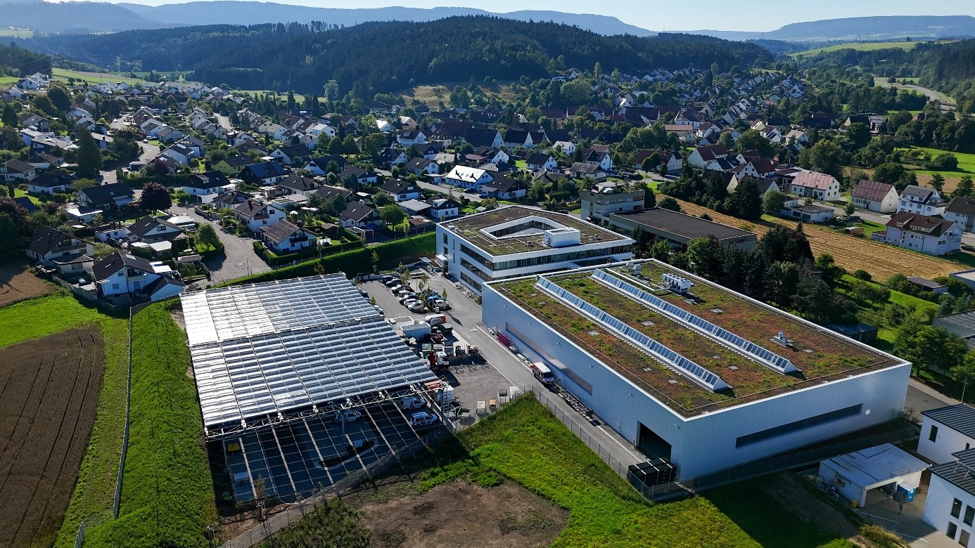 In einer Premiere errichtete das Schweizer Unternehmen dhp Technology in Zusammenarbeit mit der ENRW das erste Solarfaltdach über einem deutschen Parkplatz in Rottweil-Neufra. Die innovative Konstruktion schützt dabei nicht nur die parkenden Fahrzeuge, sondern erzeugt gleichzeitig auf 2.100 m² rund 350 kWp Solarstrom. Diese Energie kann vollständig am Standort genutzt werden.