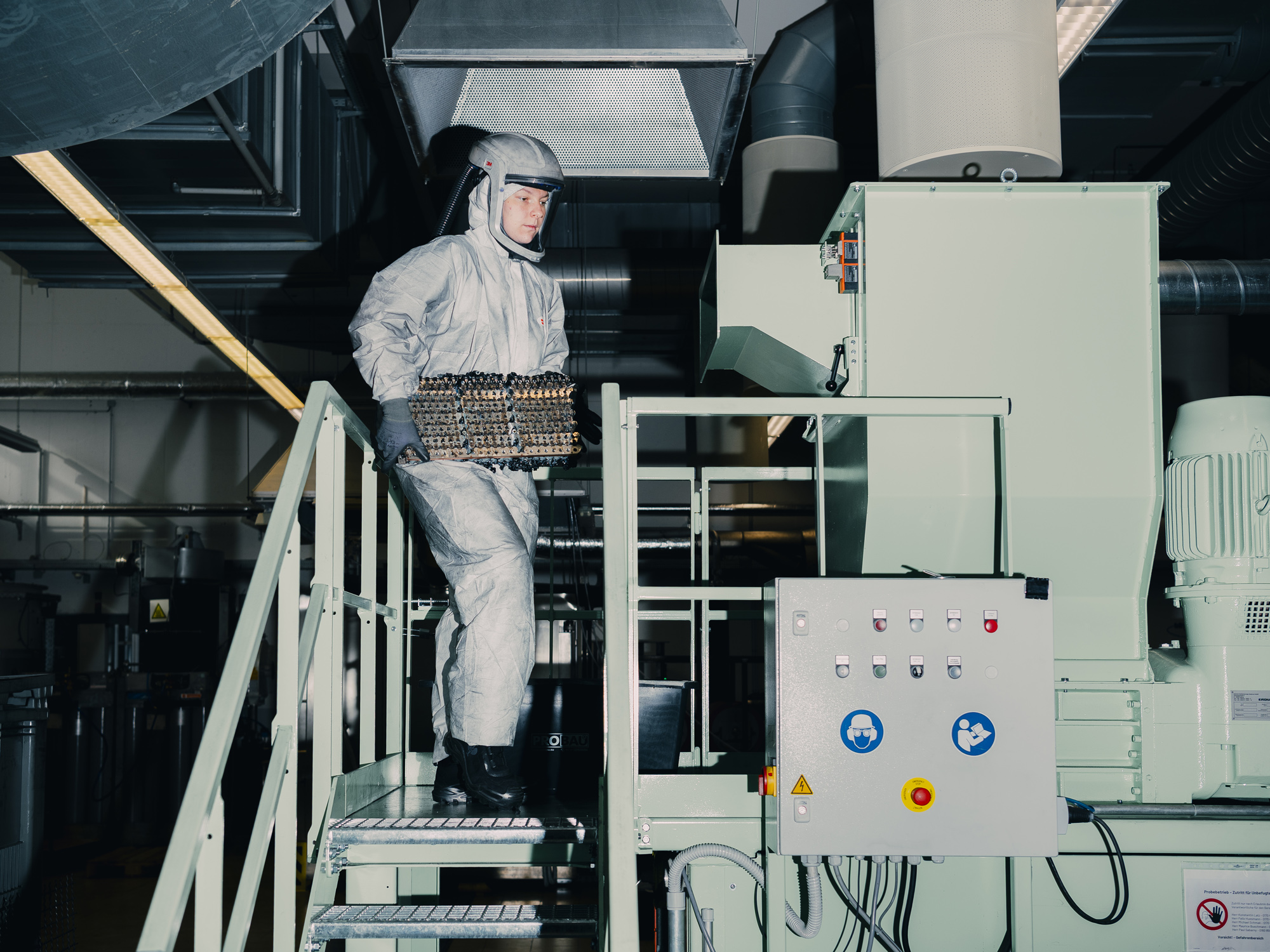 Das technologische Kernstück bildet die anschließende Hydrometallurgie, ein wasserbasiertes Verfahren, das die Rückgewinnung von Lithium und Graphit bei minimalem Chemikalieneinsatz ermöglicht. In der finalen Veredelungsstufe werden die verbleibenden Metalle wie Kobalt, Nickel und Mangan in Reinform isoliert. Das Ergebnis sind Sekundärrohstoffe – etwa schneeweißes Lithiumhydroxid, rostrotes Kobalt und anthrazitfarbenes Graphit –, die in ihrer Qualität Primärrohstoffen entsprechen. Folglich kann man diese direkt in die Produktion neuer Batteriezellen zurückführen.